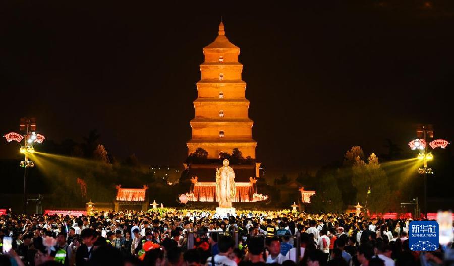 “五一”假期,西安大唐不夜城无分昼夜游人如织。街区中,旅游演艺精彩纷呈,“唐三彩骆驼载乐俑”在舞曲声中“复活”,白衣飘飘的“李白”吟咏千古名篇……