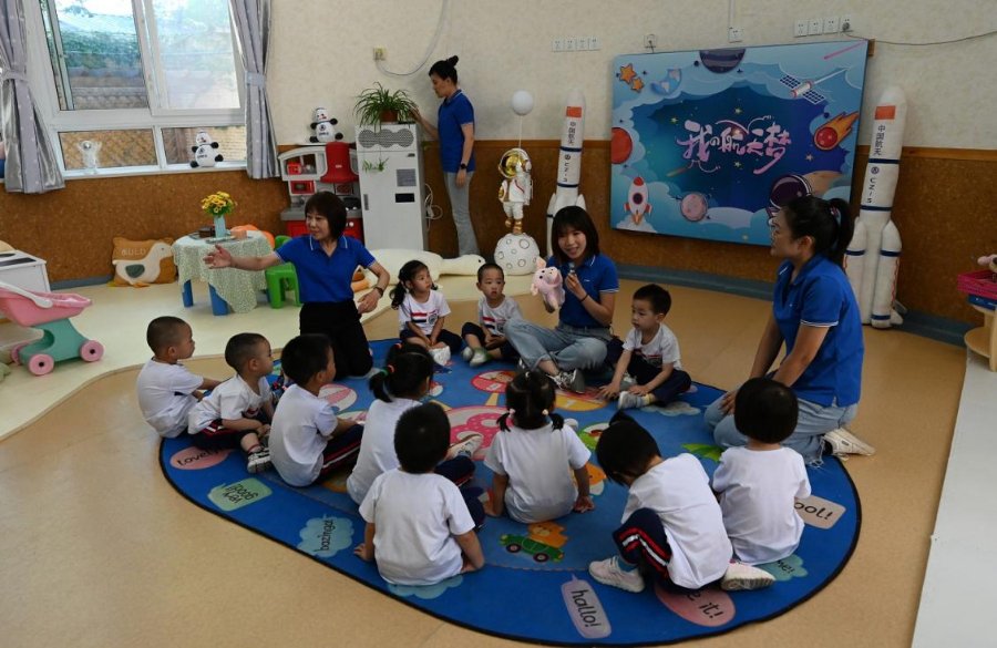 在中国航天科技集团有限公司第一研究院航天幼儿园五分园里,孩子们制作的手工艺品、墙上贴的图画都充满了航天元素。“幼儿园与我上班的地点只有500米的距离。工作日早8点,我把孩子送入幼儿园后步行到单位上班,下班时间再来接孩子,托育时间和工作时间几乎无缝对接。”中国航天科技集团有限公司航天703所职工王磊告诉记者,现在,孩子已经入园10个月了,“在这里学会了穿衣服、穿鞋等基本生活技能,性格上也很开朗。”此外,幼儿园还依托航天科技教育背景,建设了航天科技课程、航天科探教室、航天文化活动为一体的航天教育课程体系,形成了航天科技特色园所文化。