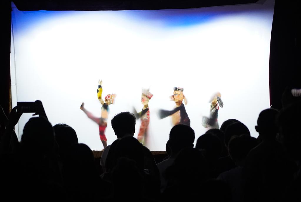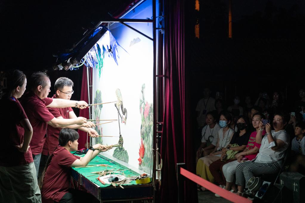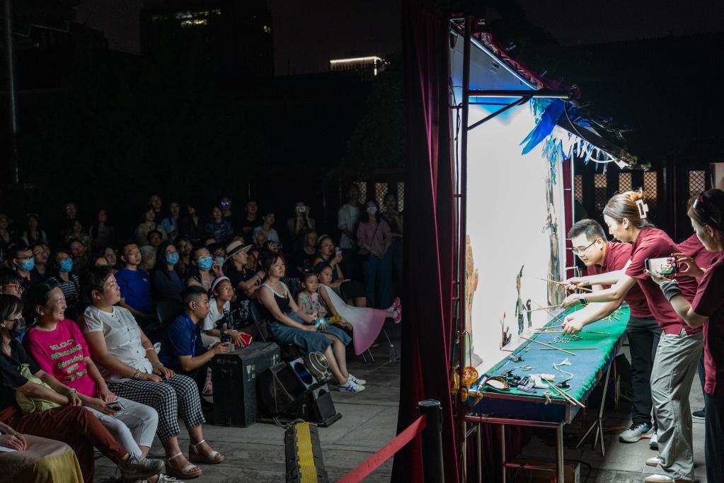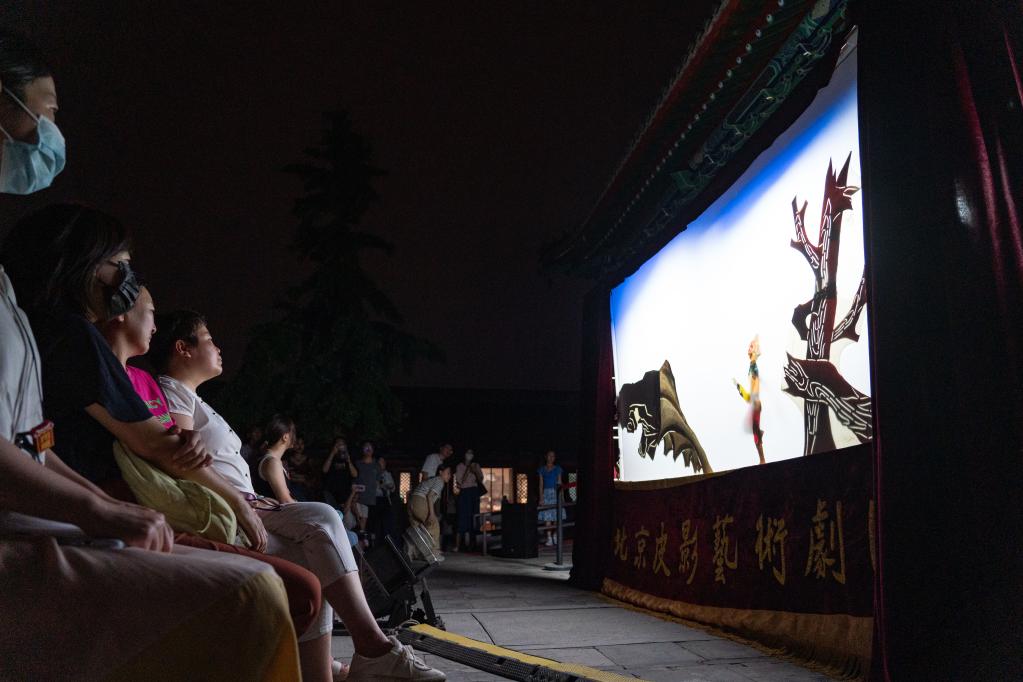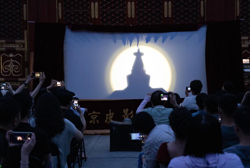 皮影戏集结了多种艺术精粹,如剪纸、绘画、雕刻等,融入各种戏曲唱腔。活动中,北京皮影剧团带来了《龟与鹤》《三邻居》《三打白骨精》三出剧目,不仅角色被演绎得活灵活现,剧情也跌宕起伏。观众们全神贯注,直呼过瘾,被奇妙的灯影深深折服。天黑后,灯光把始建于元代的白塔照亮,塔影与皮影相映成趣。