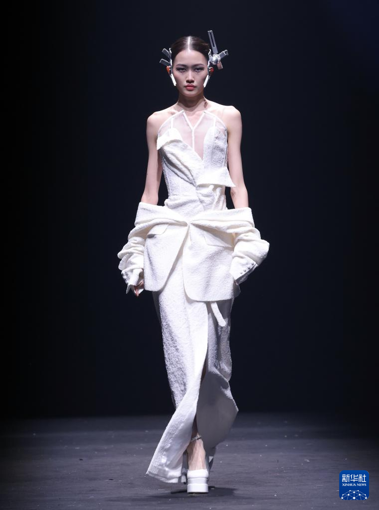9月13日,模特在展示设计师边惠中设计的时装。