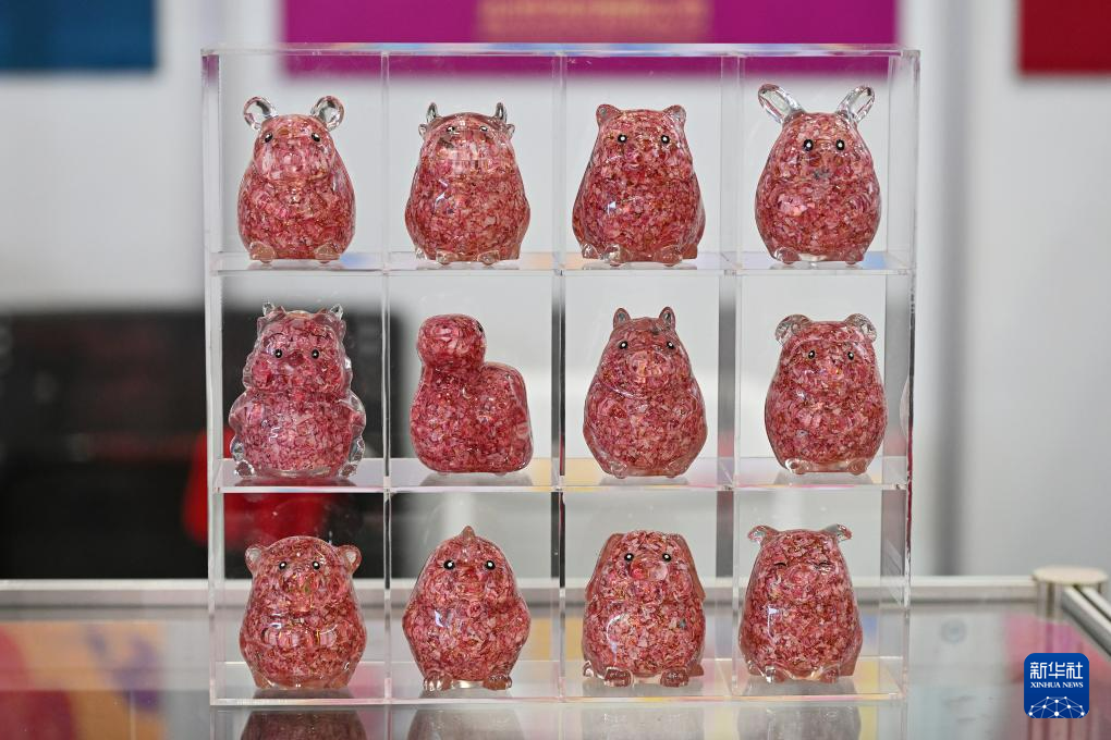 这是在博览会上展示的北京印钞有限公司用钞渣制作的十二生肖文创纪念品(12月1日摄)。