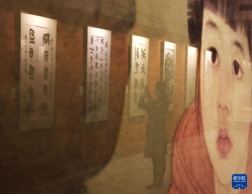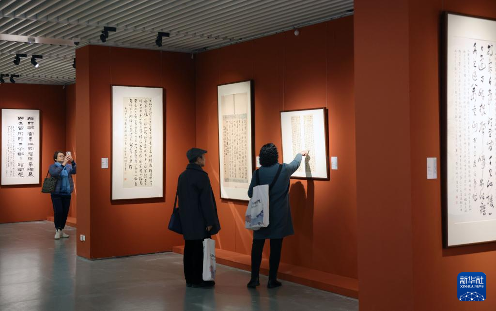 3月12日,参观者在拍摄“流光溢彩耀荆楚——湖北书画名家作品晋京展”。
