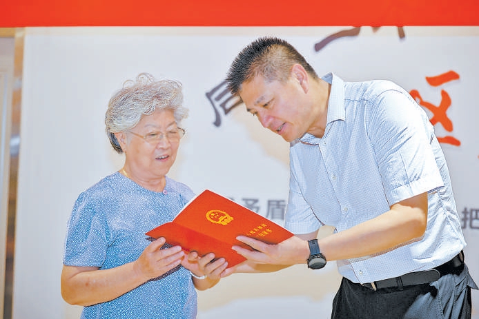 海淀区首个大规模棚改征收项目——魏公村小区居民开始领取期盼已久的房本。通讯员 何照云摄