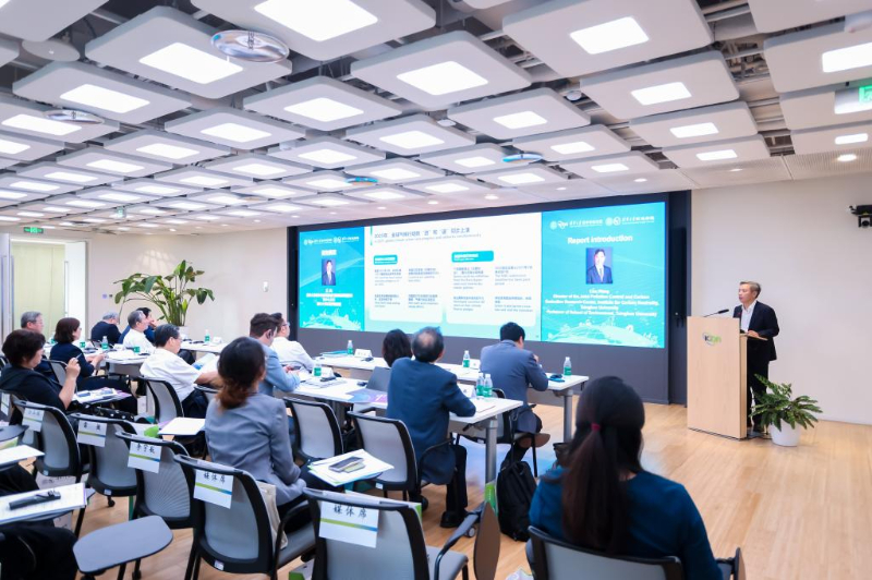 图为清华大学碳中和研究院减污降碳协同增效研究中心主任王灿教授在发布报告(清华供图)