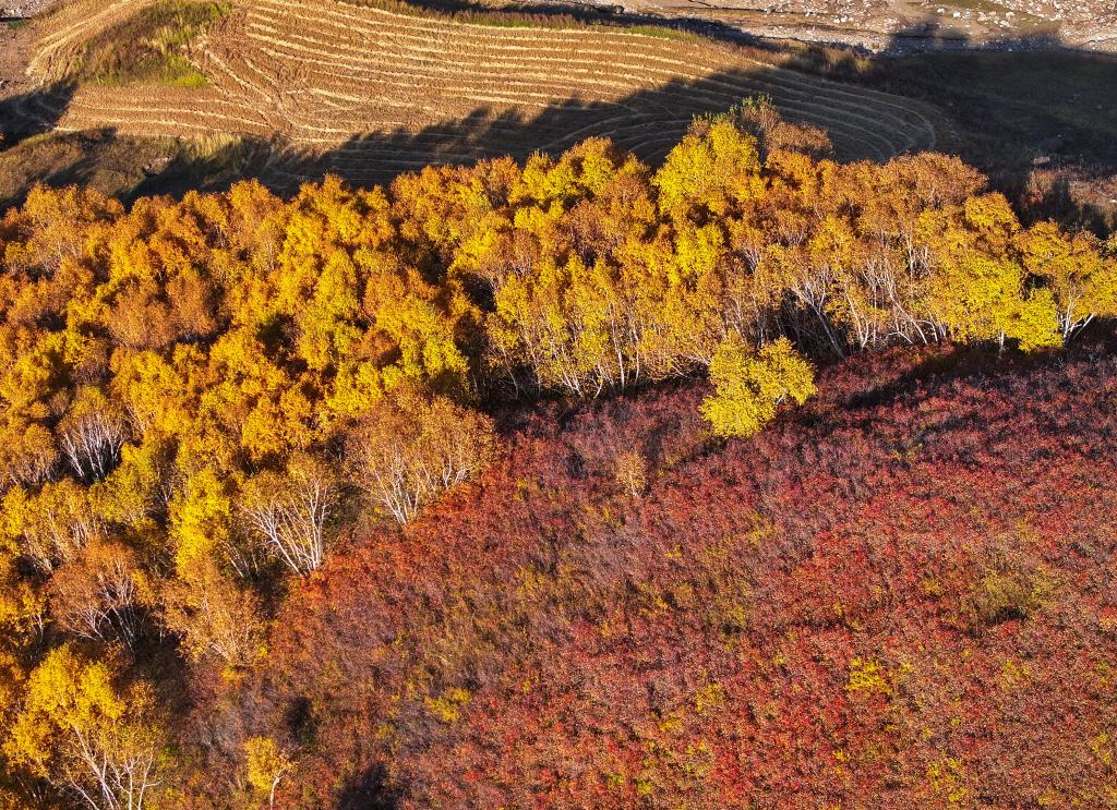 这是国庆假期间拍摄的内蒙古大青山国家级自然保护区秋景(无人机照片)。近日,内蒙古大青山国家级自然保护区层林尽染、秋色动人,成为不少市民赏秋的好去处。新华社记者 连振 摄