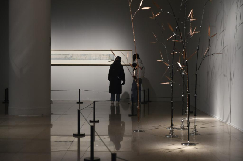 12月10日,观众在中国美术馆观赏展出作品《虹竹》。