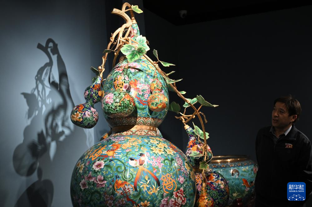 12月15日,观众参观展出的景泰蓝作品《福禄万代》。
