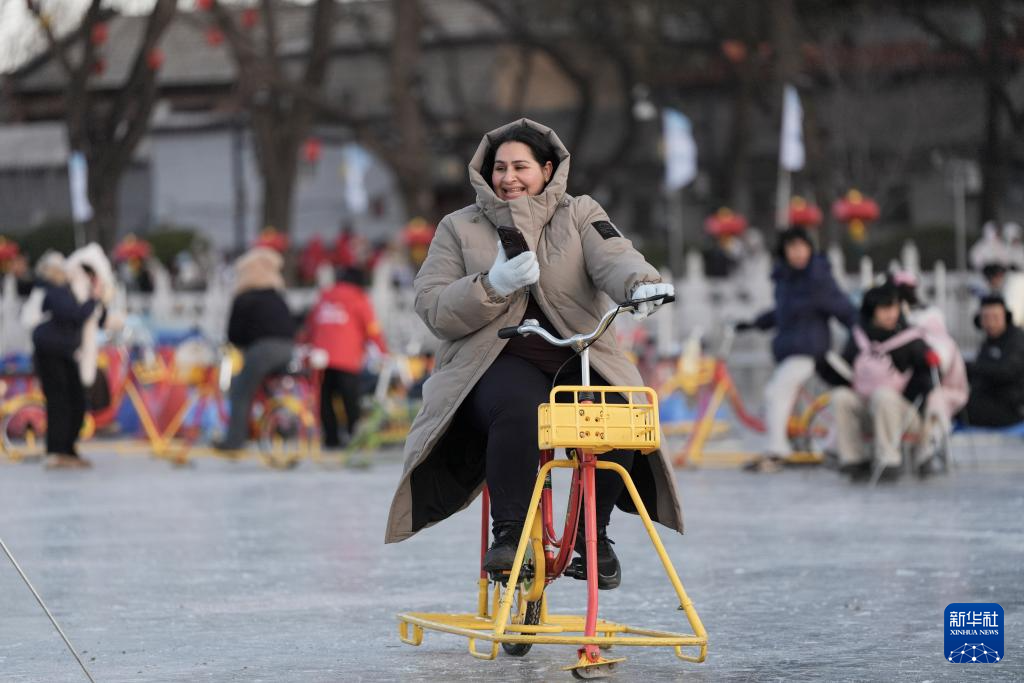 1月10日,北京什刹海前海冰场正式营业,吸引众多游客到此休闲游玩。受气温影响,冰场目前开放的是前海区域。前海冰场运营面积为3.5万平方米,营业时间为8点至21点。