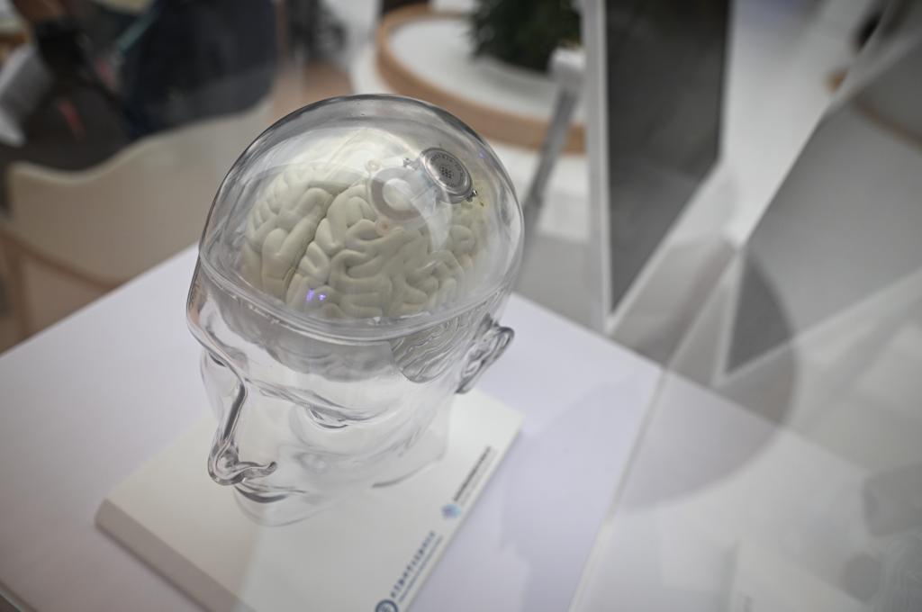 在2025中关村论坛年会上展示的“北脑一号”智能脑机系统模型,其研发企业位于昌平脑科学与脑机接口产业集聚区。(新华社记者 陈钟昊 摄)