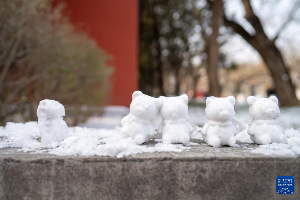 这是1月18日在北京景山东街拍摄的路边的“迷你”雪人。