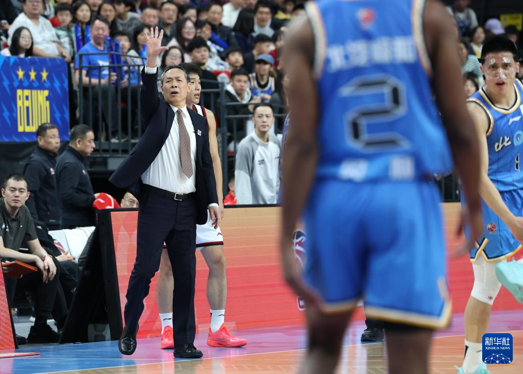 1月22日,北京北汽队主教练许利民(左)在场边指挥。