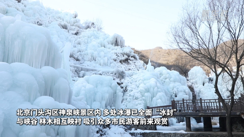 数九寒天,北京冬日限定美景冰瀑正式上线,为京郊冬季文旅市场注入发展新活力。北京门头沟区神泉峡中多处冰瀑已全面“冰封”,冰瀑与峡谷、林木相互映衬,吸引众多市民游客前来观赏。