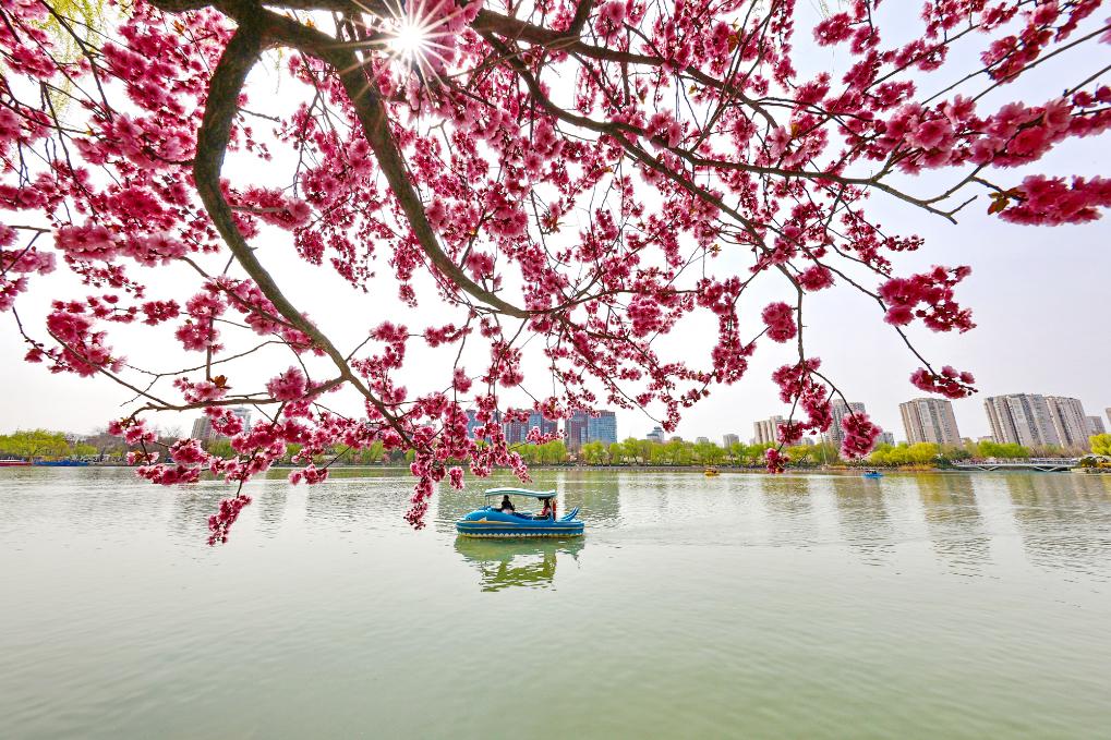 2026年3月30日,游人乘船在北京玉渊潭公园游玩。CICPHOTO/刘宪国 摄