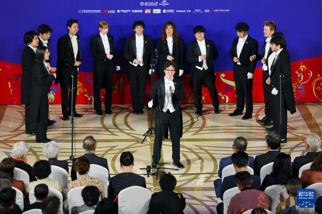 3月31日,美国耶鲁大学威芬普夫斯阿卡贝拉合唱团在北京开展文化交流活动,现场演绎多首经典歌曲,以音乐为纽带,传递友谊。