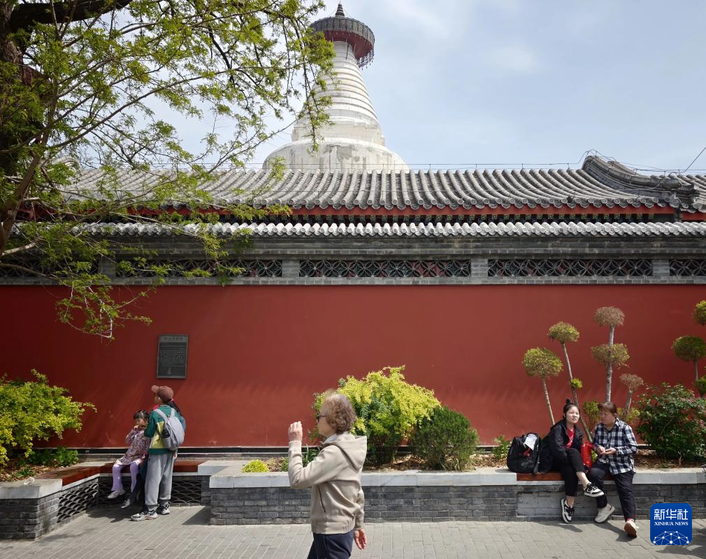 4月12日,人们在北京白塔寺周边游览。