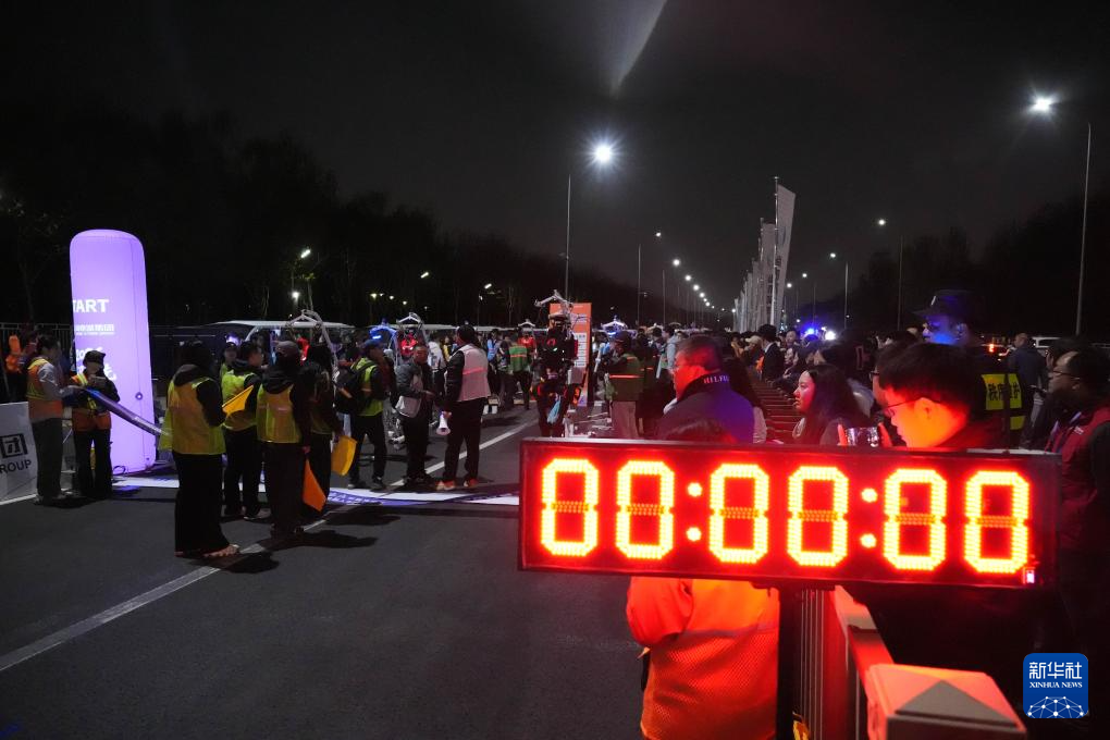 4月11日,参赛队伍在起点进行准备工作。新华社记者 谢晗 摄