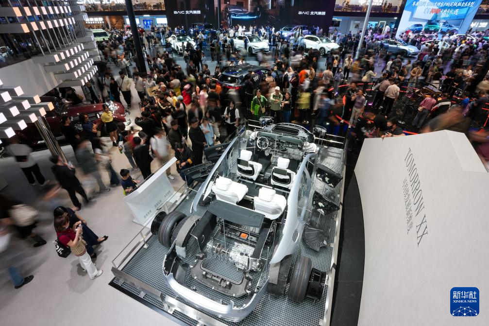 4月26日,在2026北京车展上,参观者在梅赛德斯-奔驰公司和北汽集团展台参观。