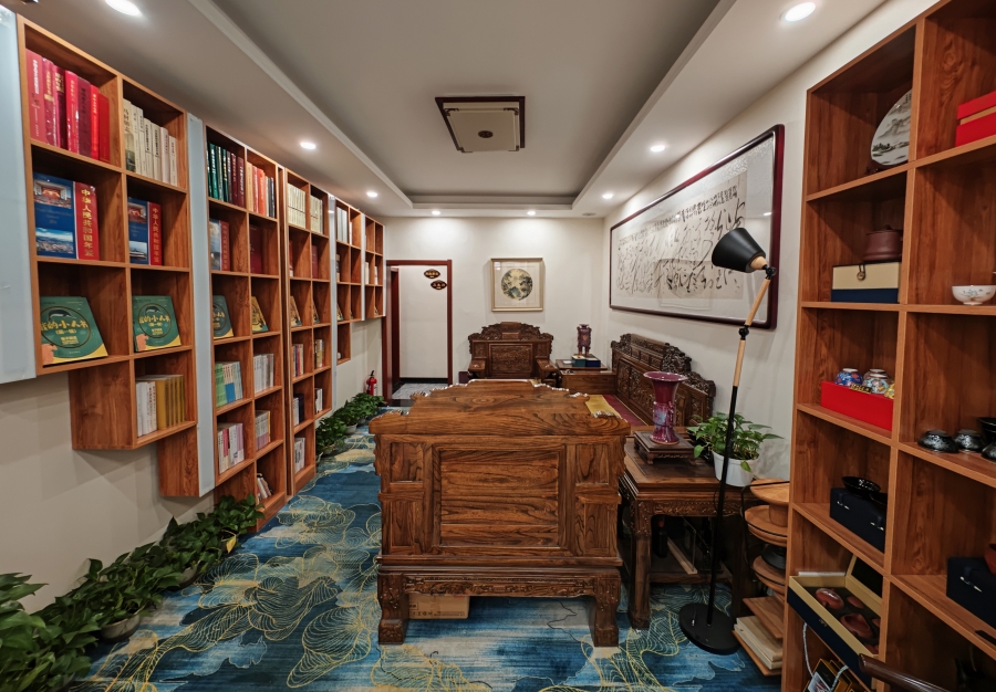 在西城区的闹市街旁,中国新闻书店也享受着经营项目多元化带来的福利。作为国内唯一一家国字头的新闻类专业书店,除了满墙的新闻书籍和红色书籍之外,“新华文创”等亮眼的文创产品和精美的伴手礼在这里陈列。店内设有三个茶室,专供读者休憩品茶和阅读,每个茶室几乎每天都是满客状态。