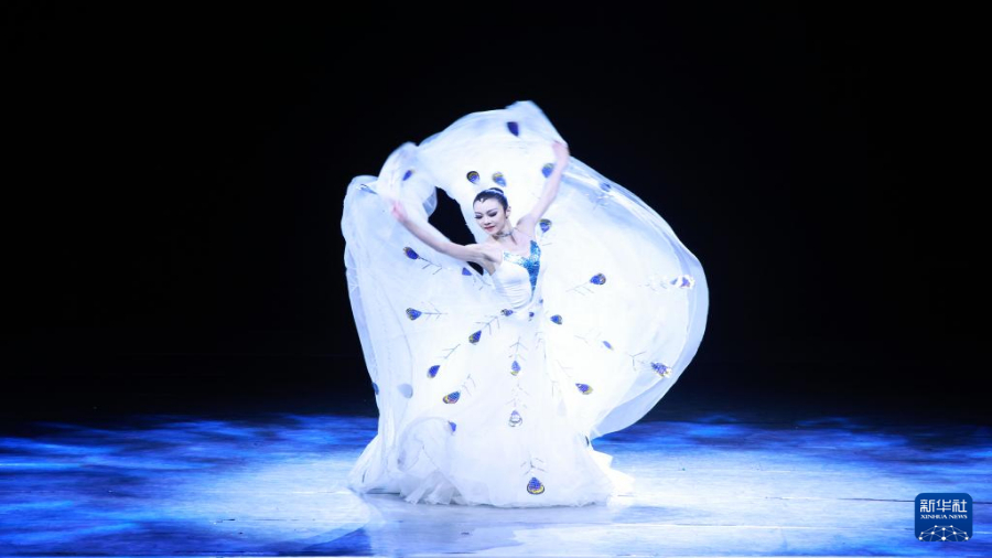 4月22日,演员在公众开放日上为观众表演孔雀舞。