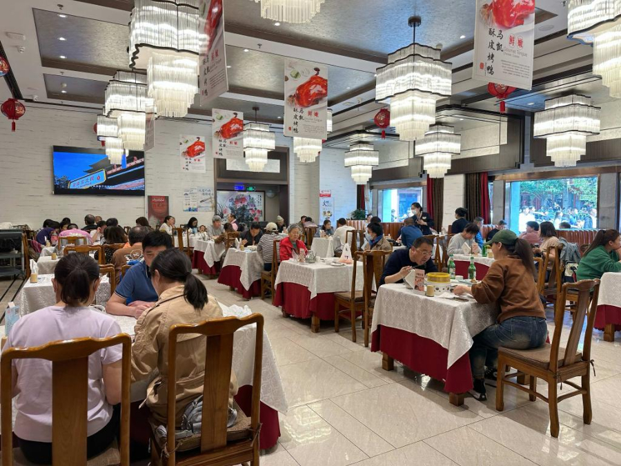 记者了解到,假日期间,除马凯餐厅外,东来顺、全聚德、同和居、同春园等多家老字号都出现了“吃饭要等位、打卡要排队”的热闹场景。