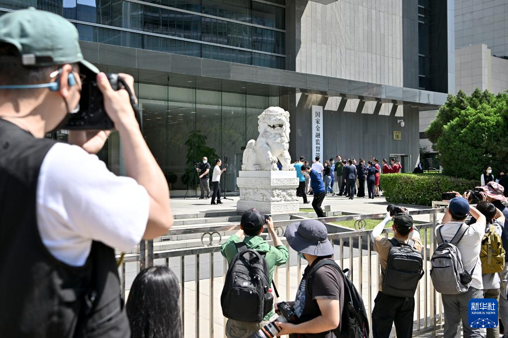 5月18日,媒体记者在国家金融监督管理总局门前拍摄。 新华社记者 李鑫 摄