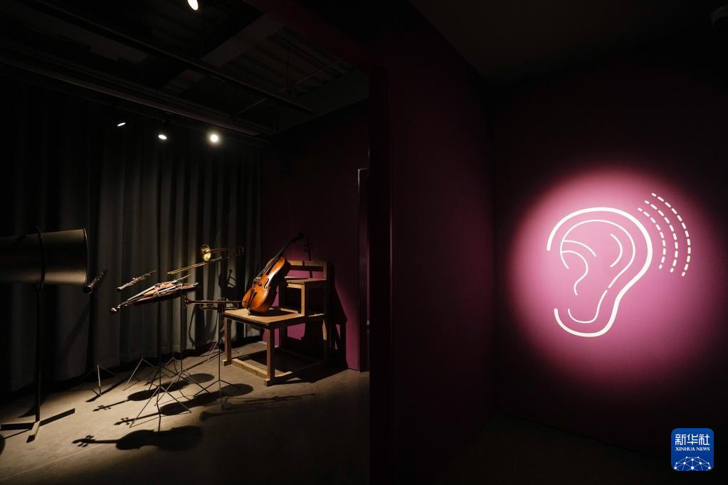 在位于北京的声音艺术博物馆“音乐”展区,六个声音体验装置罩内可以聆听采集自新疆和田地区的音乐(5月17日摄)。新华社记者 鞠焕宗 摄