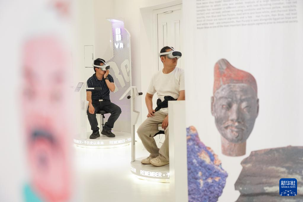 观众在位于北京的RE睿·国际创忆馆体验展示兵马俑影像信息的VR设备(5月14日摄)。新华社记者 陈钟昊 摄