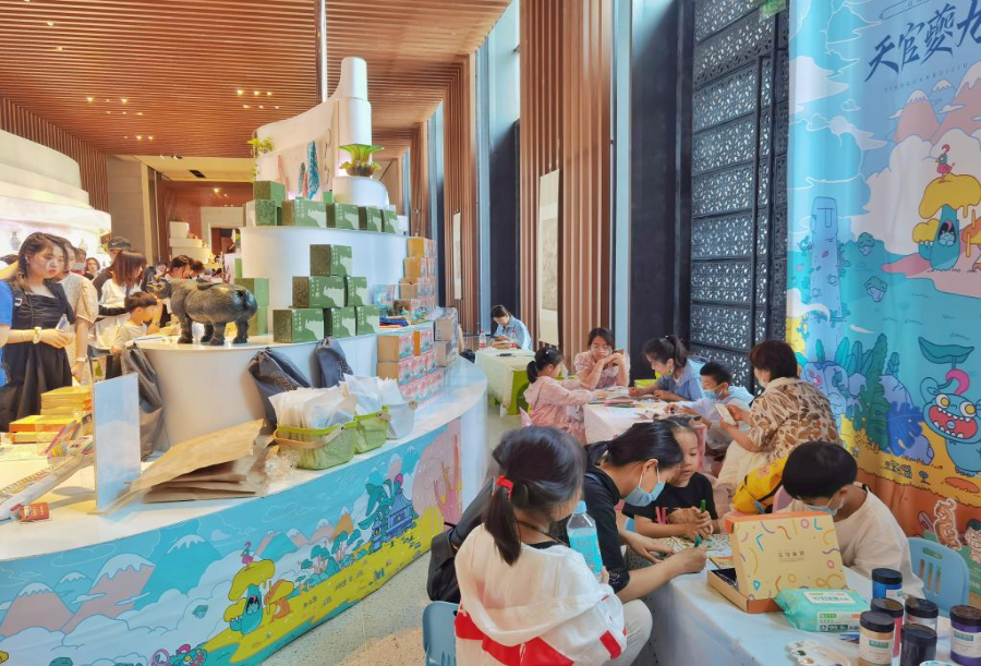 今年国际博物馆日,国博在文创体验区推出为期四天的创绘体验活动,观众可以购买“半成品”,涂色制作,创作出自己专属的文创产品。