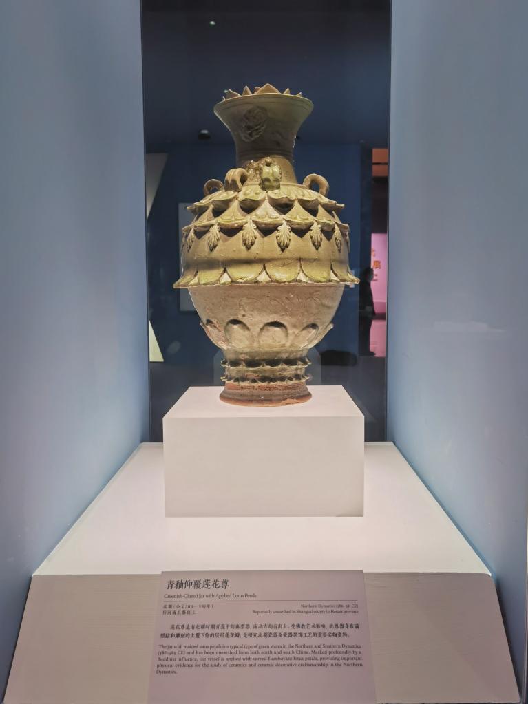 国家博物馆展出的青釉仰覆莲花尊。新华社记者杨湛菲 摄
