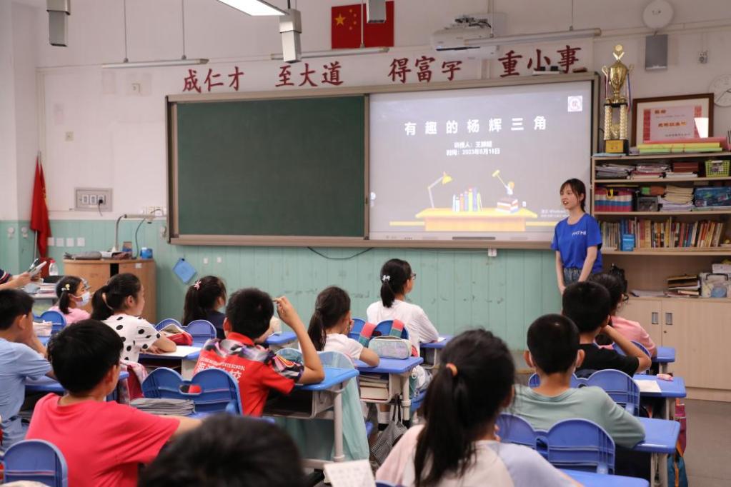 这是中国人民大学数学学院“数学·启明星”项目开展的首次活动。据悉,为探索新时代思政育人途径,推动数学学科大中小学思政课一体化建设,数学学院策划了此项目,旨在通过学院的研究生或高年级本科生在中小学开展数学的“科普+思政”教育,培养青少年数学思维能力和科技创新意识,让他们感受数学奥秘,体验数学之趣,挖掘数学之美。