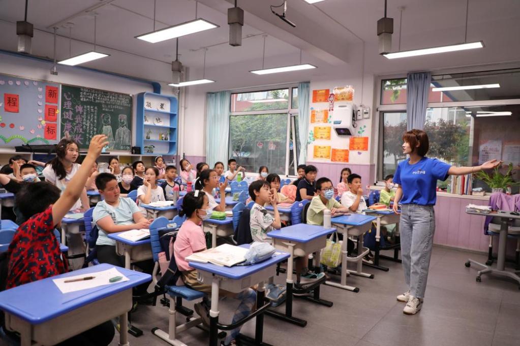 图为中国人民大学数学学院学生在为小学生授课(人大供图)