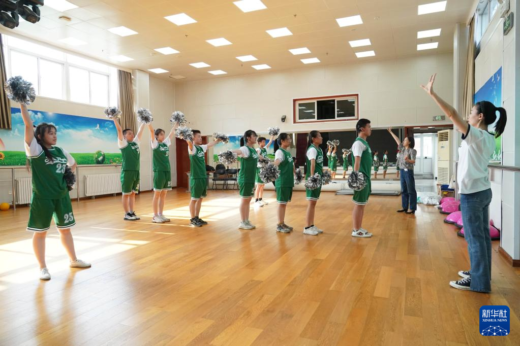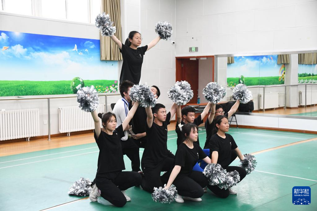 在北京市健翔学校,舞蹈团的学生在训练舞蹈(5月18日摄)。