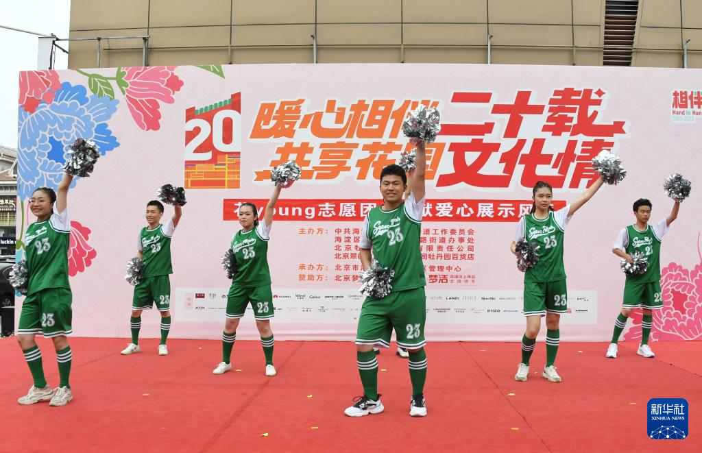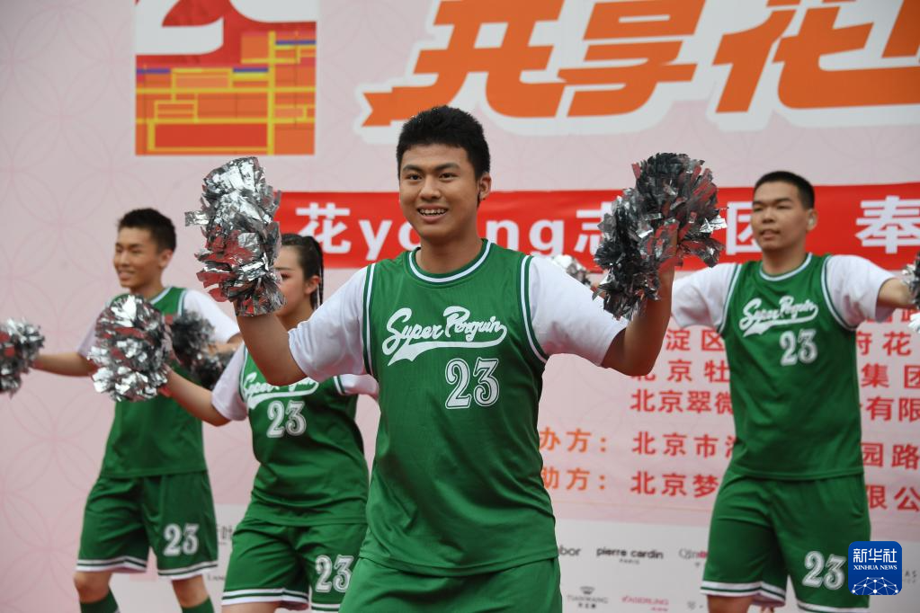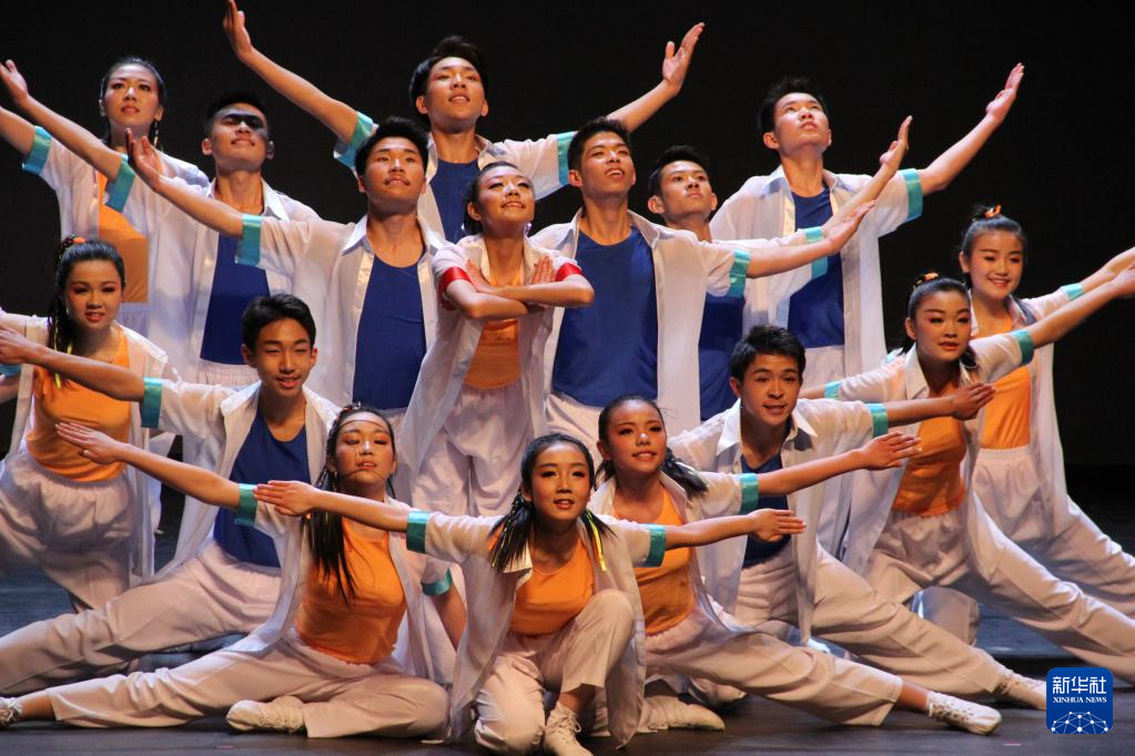 5月21日,舞蹈团的学生在北京市海淀区花园路街道的一场活动中表演。