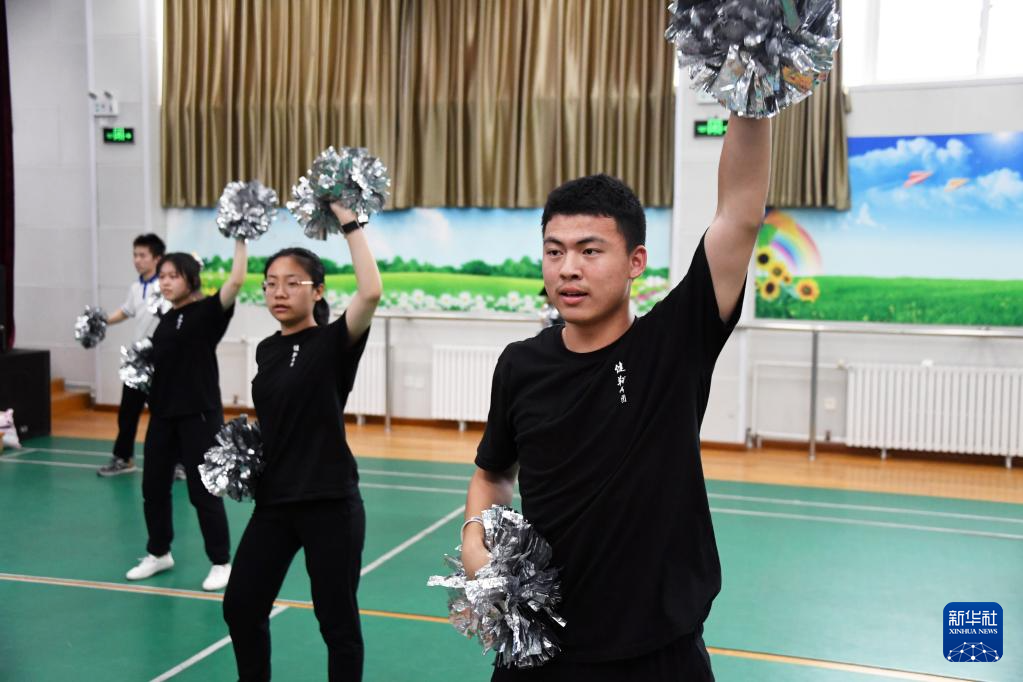 这支拉拉队由北京市健翔学校舞蹈团的听力障碍学生组成。在舞蹈团老师的手语指挥下,他们完成了精彩的表演,现场氛围热烈。