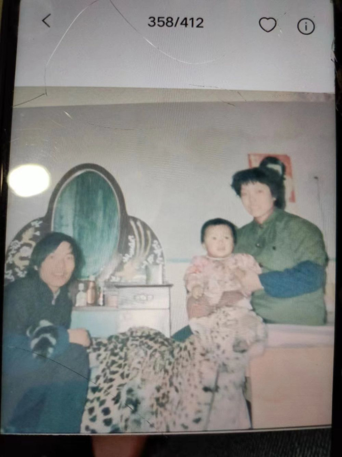 受访者向记者展示,20世纪90年代生活在百花山地区的村民与豹子的标本合影。新华每日电讯记者 赵琬微 摄