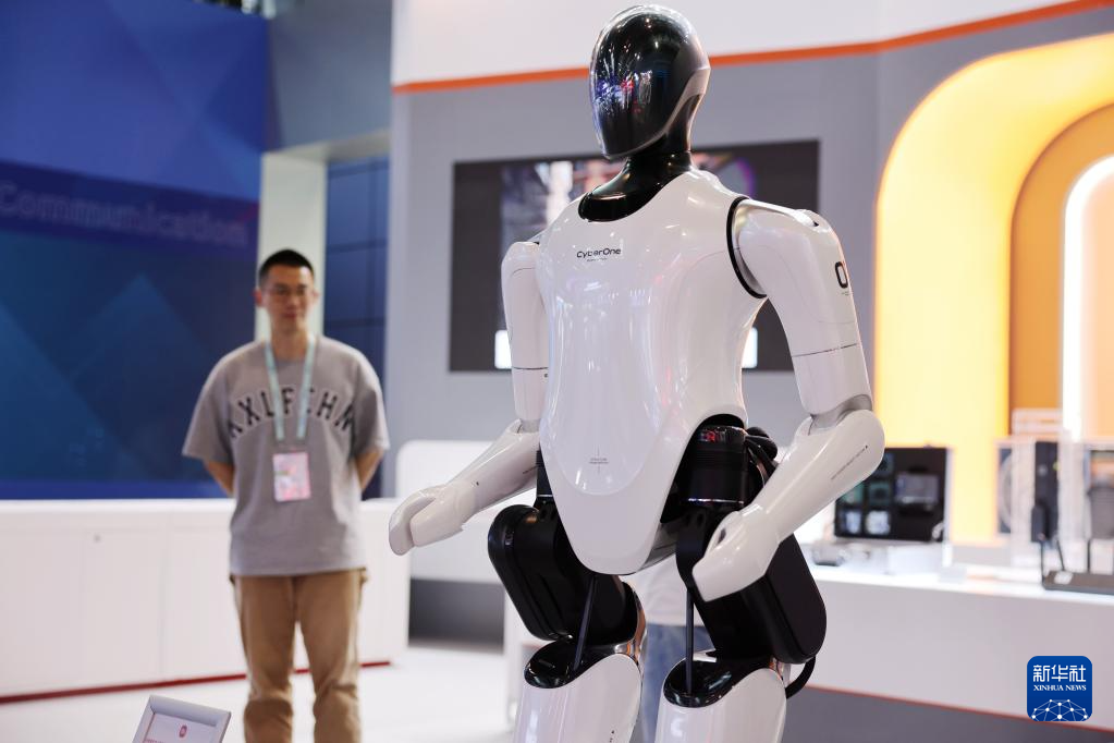 这是5月26日在中关村国家自主创新示范区展示中心拍摄的一款全尺寸人形仿生机器人。