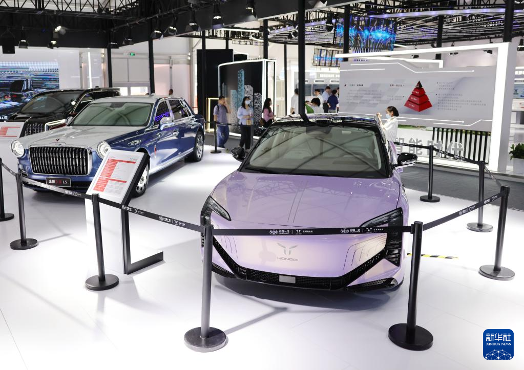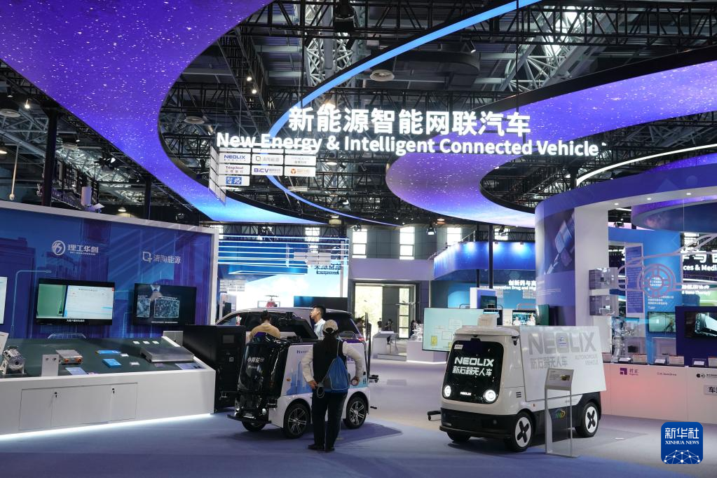 5月26日在中关村国家自主创新示范区展示中心拍摄的新能源智能网联汽车展区。