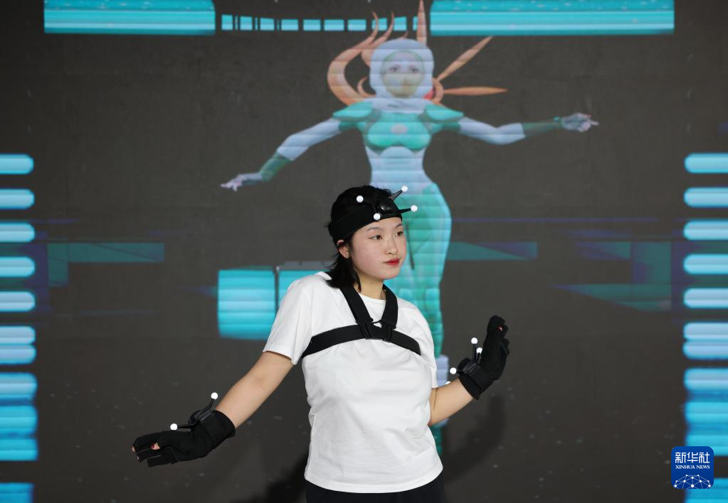 5月26日,在中关村论坛展览(科博会),工作人员在展示一款动作捕捉设备。