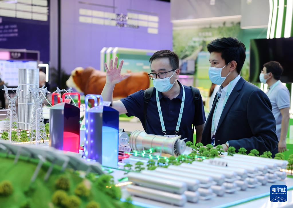 5月26日,观众在在中关村国家自主创新示范区展示中心了解100MW先进压缩空气储能技术。