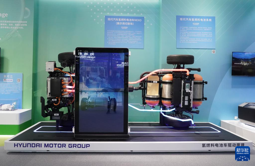 5月26日在中关村国家自主创新示范区展示中心拍摄的现代汽车氢燃料电池车NEXO(展示用切割车)。