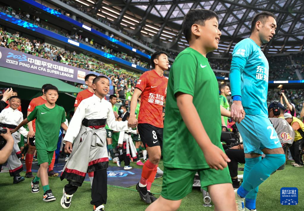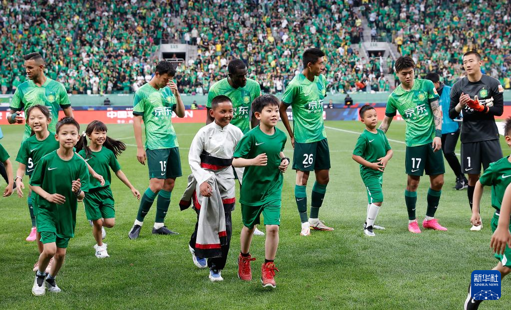 新华社北京6月2日电(记者夏子麟)2日晚北京国安国安主场对阵长春亚泰的中超联赛,“新工体”迎来了6名特别的小球童。他们身着藏族传统服饰,与球员手牵手步入球场。和6位小球童一同来到“新工体”的还有另外34名小伙伴,他们是来自青海省玉树藏族自治州儿童福利院的足球少年们。