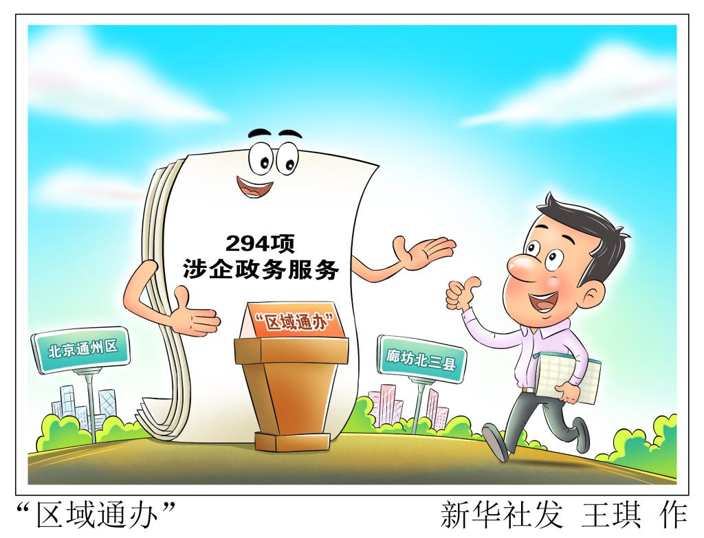 6月9日,北京城市副中心管理委员会、北京市通州区人民政府、河北省廊坊市人民政府在河北省大厂回族自治县签订《政务服务“区域通办”2.0版框架协议》,294项高频涉企经营许可事项实现“区域通办”。