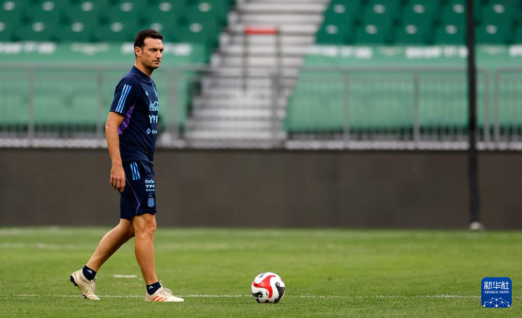 6月14日,阿根廷队主教练斯卡洛尼在训练中。