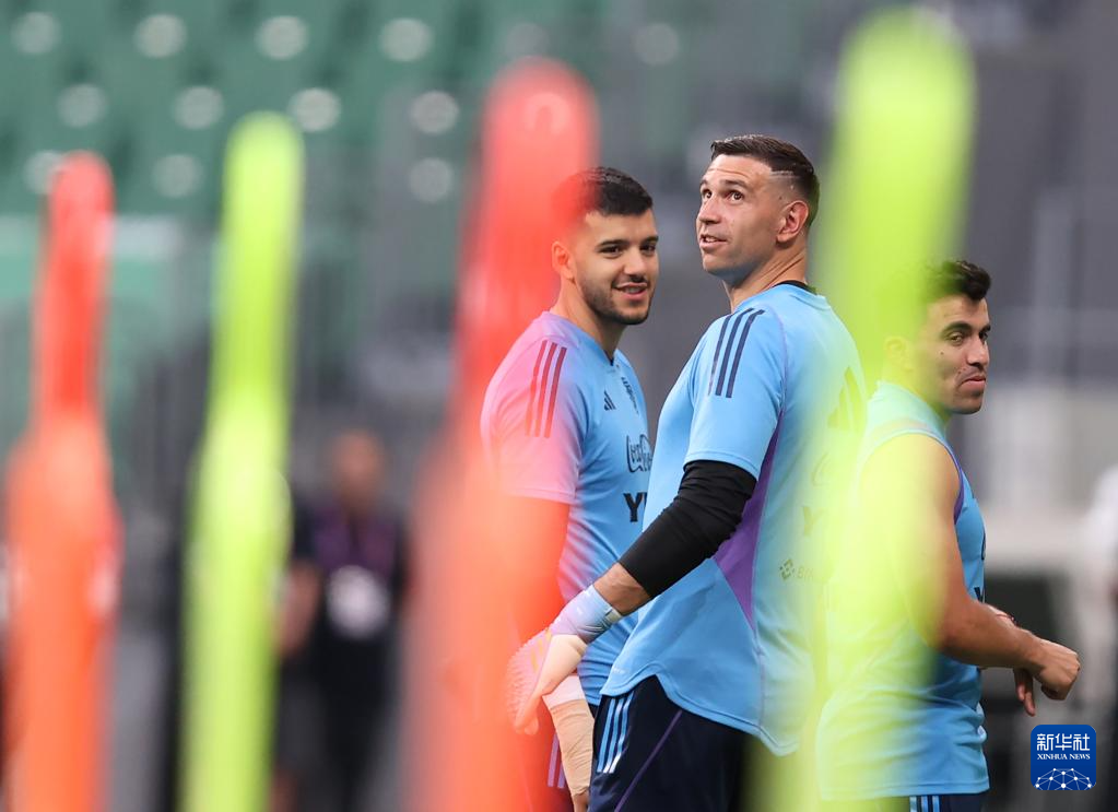 6月14日,阿根廷队守门员马丁内斯(中)在训练中。