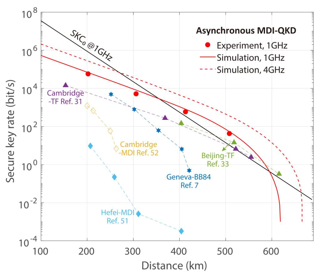 这一研究的最大贡献是创造了城际量子密钥率的新纪录。在相距400公里处的密钥率较此前提高了6个数量级。在传输距离306公里的安全密钥率超过每秒5000比特,传输距离201公里下量子密钥率超过每秒57000比特,已可满足城市间语音通信的实时加密需求。