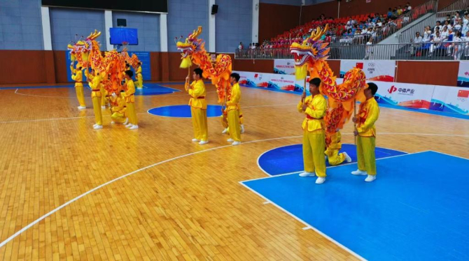“龙头”抬起、“龙身”腾转、“龙尾”穿插,通过展示扭、挥、仰、跪、跳、摇等各种姿势,在桌上和地面上表演腾云驾雾、高车摇水、行步舞龙等动作。在江西崇义分会场,省级非遗项目“崇义三节龙”吸引了不少游客关注。开幕式后,现场还进行了激烈的篮球比赛,引来阵阵欢呼。
