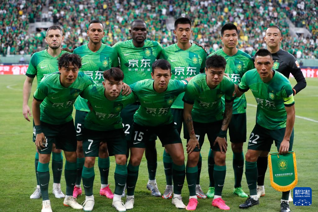 6月29日,北京国安队首发球员赛前合影。