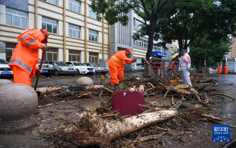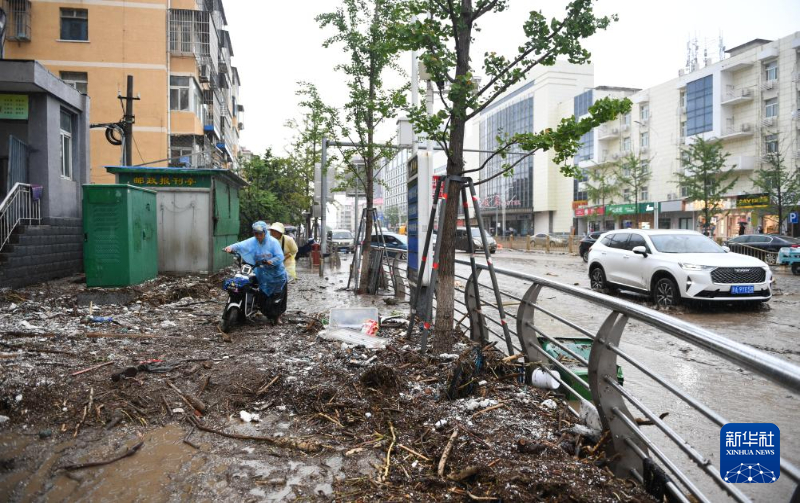 连日来,北京出现暴雨或大暴雨,局地现特大暴雨。受降雨影响,位于北京西部的门头沟区部分道路中断,工作人员正在积极恢复路面秩序。