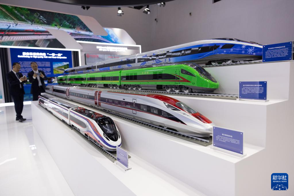 中国铁道科学研究院集团有限公司展示的多款动车组模型(9月25日摄)。