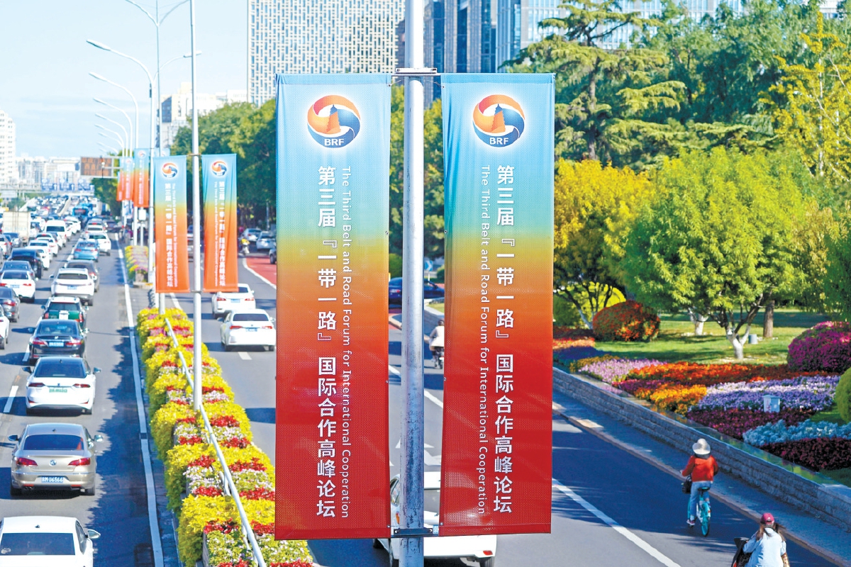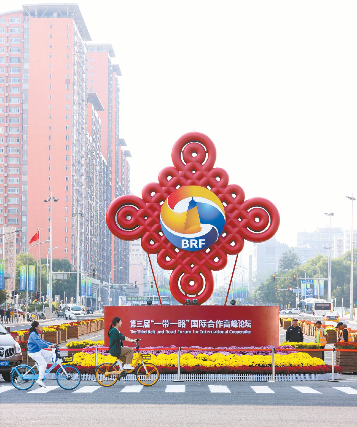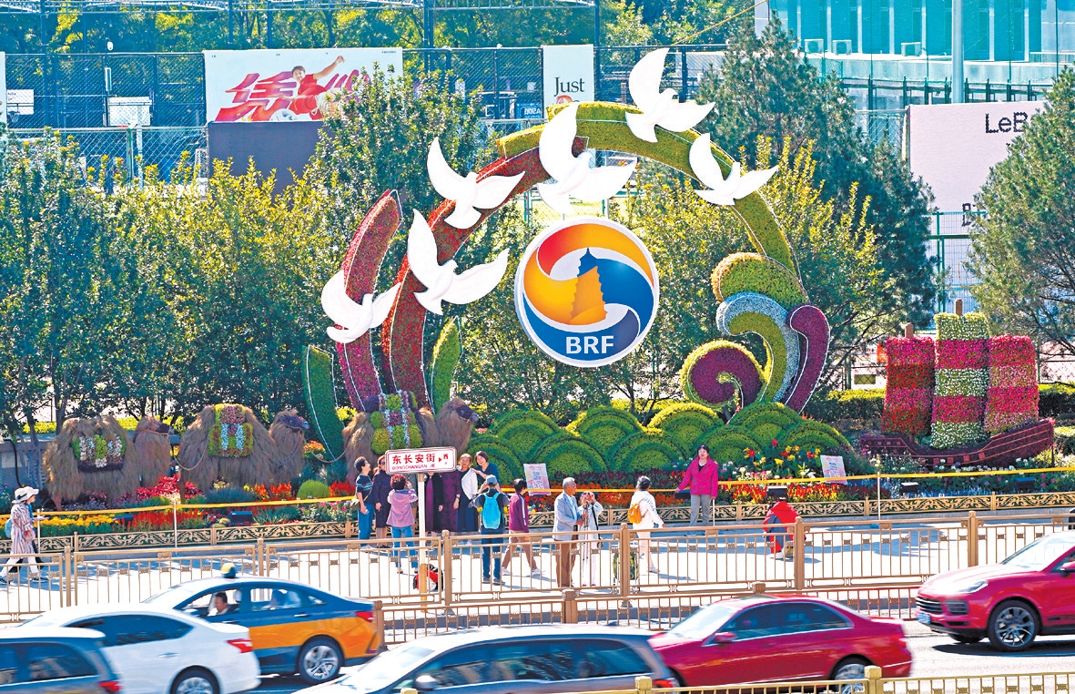 第三届“一带一路”国际合作高峰论坛将于10月17日至18日在北京举行,主题为“高质量共建‘一带一路’,携手实现共同发展繁荣”。2023年是共建“一带一路”倡议提出十周年的重要时间节点,论坛主办城市北京处处洋溢着热情祥和的气息。连日来,北京市内主要道路、交通枢纽、标志性建筑周边陆续完成了相关雕塑、花坛、道旗、宣传标语等景观布置,喜迎本届高峰论坛的召开。